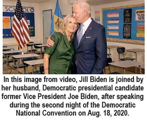 Biden’s wife, Jill, said that if elected, her husband would bring to the White House “leadership worthy of our nation” at the time of an historic coronavirus pandemic and economic depression.