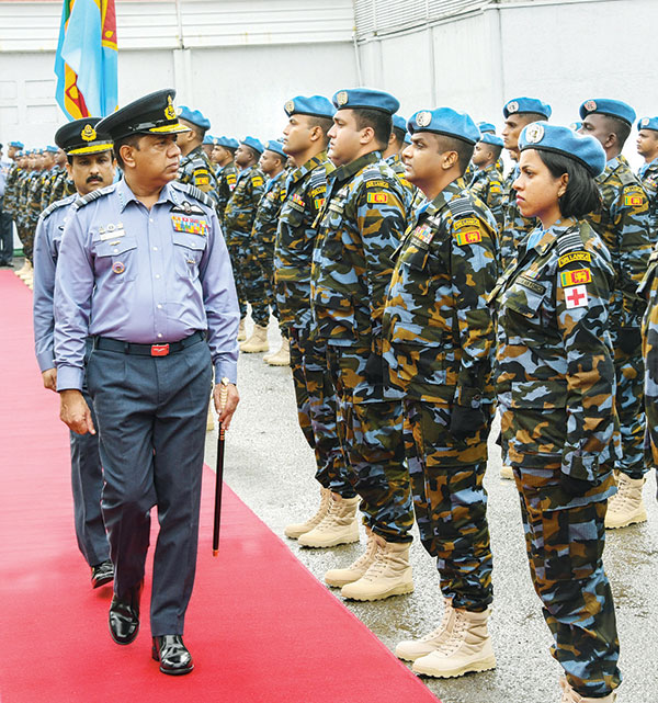 SLAF says it is the seventh UN helicopter deployment contingent. The Commander of the Air Force, Air Marshal Sudarshana Pathirana, took the salute of the parade, commanded by Wing Commander Sampath Liyanarachchi, the Contingent Commander.