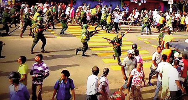 The Army, on August 01, 2013, opened fire at villagers at Weliweriya, protesting against a factory which they alleged polluted their groundwater. They demanded clean drinking water.
