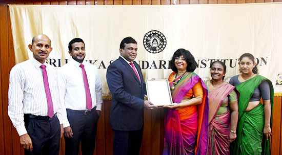 Standing (L-R) – Pushpakumara Edirisinghe, Director Operations – Litro Gas Terminal Lanka (PVT) Limited, Jayantha Basnayake, Director Health, Safety & Environment – Litro Gas Lanka Ltd, Anil Koswatte, chairman & CEO – Litro Gas Lanka Ltd and Litro Gas Terminal Lanka (PVT) Limited, Dr. (Mrs.) Siddhika G.Senaratne, Director General – Sri Lanka Standards Institution, Samanthi Narangoda , Actg. Deputy Director General – Sri Lanka Standards Institution, Rajika Jayawardena, Assistant Director Systems Certification – Sri Lanka Standards Institution