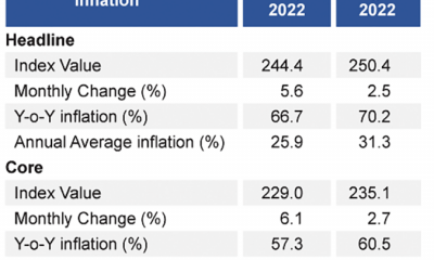 Headline inflation, as measured by the year-on-year (Y-o-Y) change in the National Consumer Price Index (NCPI, 2013=100)1 which followed an increasing trend since October 2021, declined to 70.6% in October 2022 from 73.7% in September 2022. Similarly, the Food inflation (Y-o-Y) decreased to 80.9% in October 2022 from 85.8% in September 2022, while Non-Food inflation (Y-o-Y) decreased to 61.3% in October 2022 from 62.8% in September 2022.
