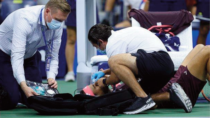 He was hurt when his racquet bounced back off the court as he stretched for a ball and the 36-year-old needed a medical timeout after the incident.