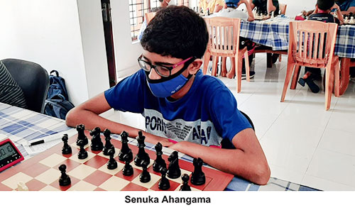Ahangama also from DS Senanayake scored 6.5 points in nine games by scoring six wins and conceding a solitary defeat at the hands of J. Bhavanan of Hindu College, Jaffna. He drew with Disara Tennakoon of Dharmaraja College, S.D.B.K. Senevirathne of Maliyadeva College and Nabil Nazar Mohamed of Gateway College. Senuka became the Champion in the Group X.