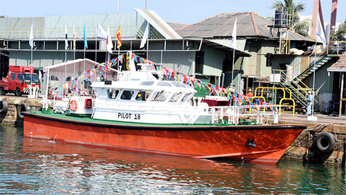 Built by the Colombo Dockyard PLC, the pilot boat was designed by Macduff Ship Designing Ltd; of Scotland. The pilot boat with a length of 19 metres is designed to easily accommodate four pilots and four sailors. With a top speed of 22 knots (units of nautical miles), this vessel is specially designed to operate under any weather condition prevailing in Sri Lanka.