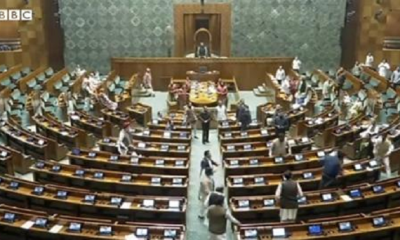 India’s parliament witnessed chaotic scenes after at least two men intruded into the chamber, shouting slogans and spraying coloured gas. Images show MPs and security officials...