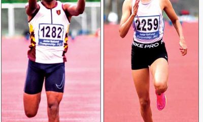 by Reemus Fernando Sprinters Merone Wijesinghe of Ananda College, Colombo and Dinara Bandara Dela of Gateway College, Colombo who won the Under 20 boys’ and girls’...