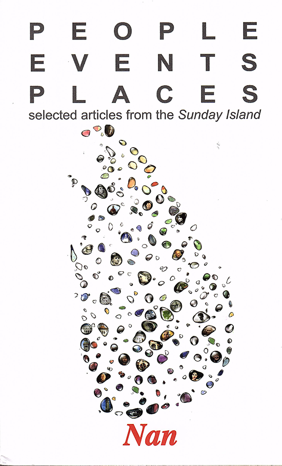 She explains the criteria used to select the material included in People, Events, Places. They are Sri Lanka-centric and they have a personal relevance, interest or significance to her. Some deal with persons, places and institutions of historic interest, others have arisen from interviews with prominent personalities.As her current editor Manik de Silva points out in his foreword to the collection, Nan ‘has drawn from a background of a conservative Kandyan upbringing (against which she sometimes rebelled but eventually came to terms with)…’ Her liberal and inclusive worldview has also prompted her to focus on women in her choice of topics; particularly aspiring and accomplished women writers.